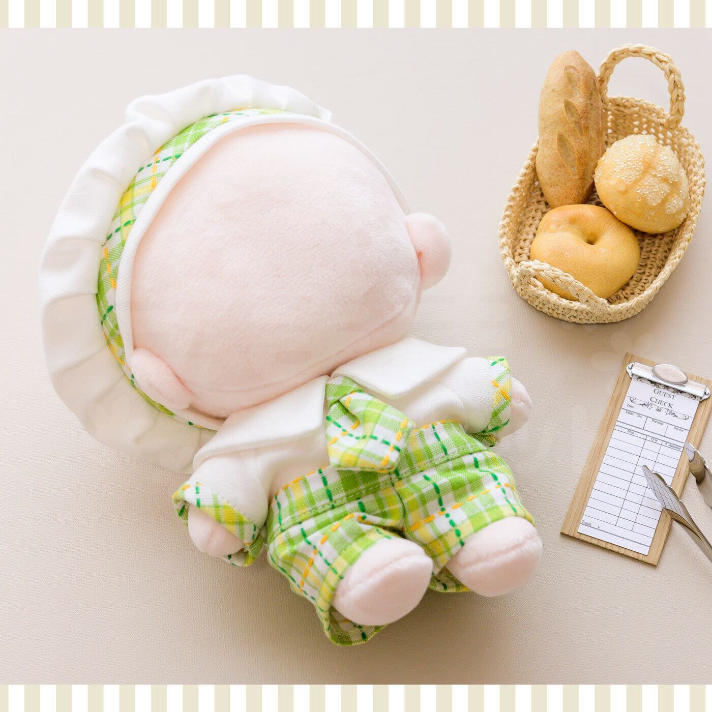 シャツは後ろが面ファスナーあき・ズボンはゴム入りで、骨の入った硬いぬいちゃんも着用できます。帽子は頭回り29~30センチくらいだとちょうど良くかぶれます。